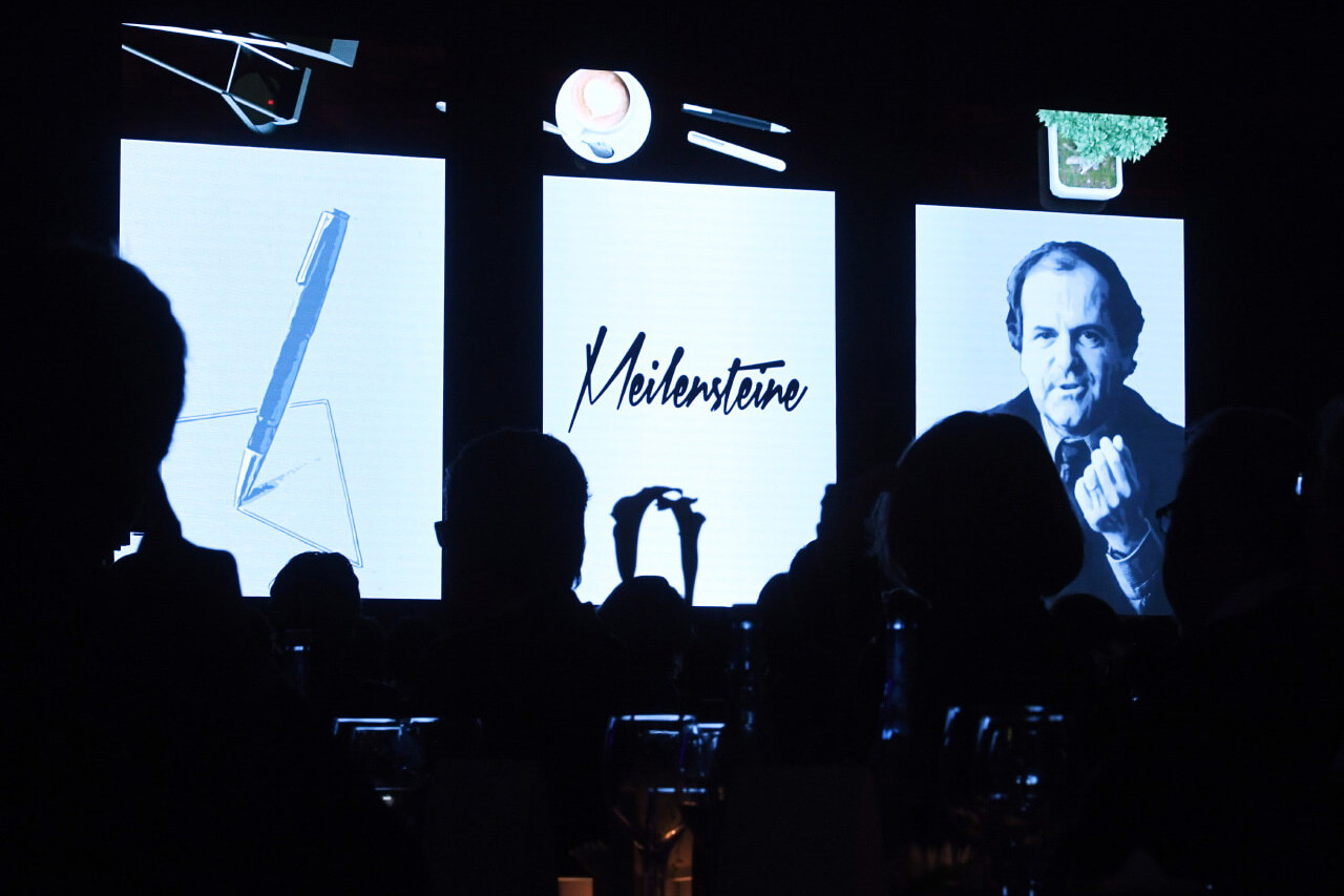 Höhepunkt war sicherlich das große Finale mit zusammenfallenden Blätterbauwerken, Tintenwolken, die das antike Gebäude in Farbe tränkten, und der finalen Präsentation des Kampagnenclaims „not just a pen“. Das Ende einer einzigartigen Lichtsymphonie.