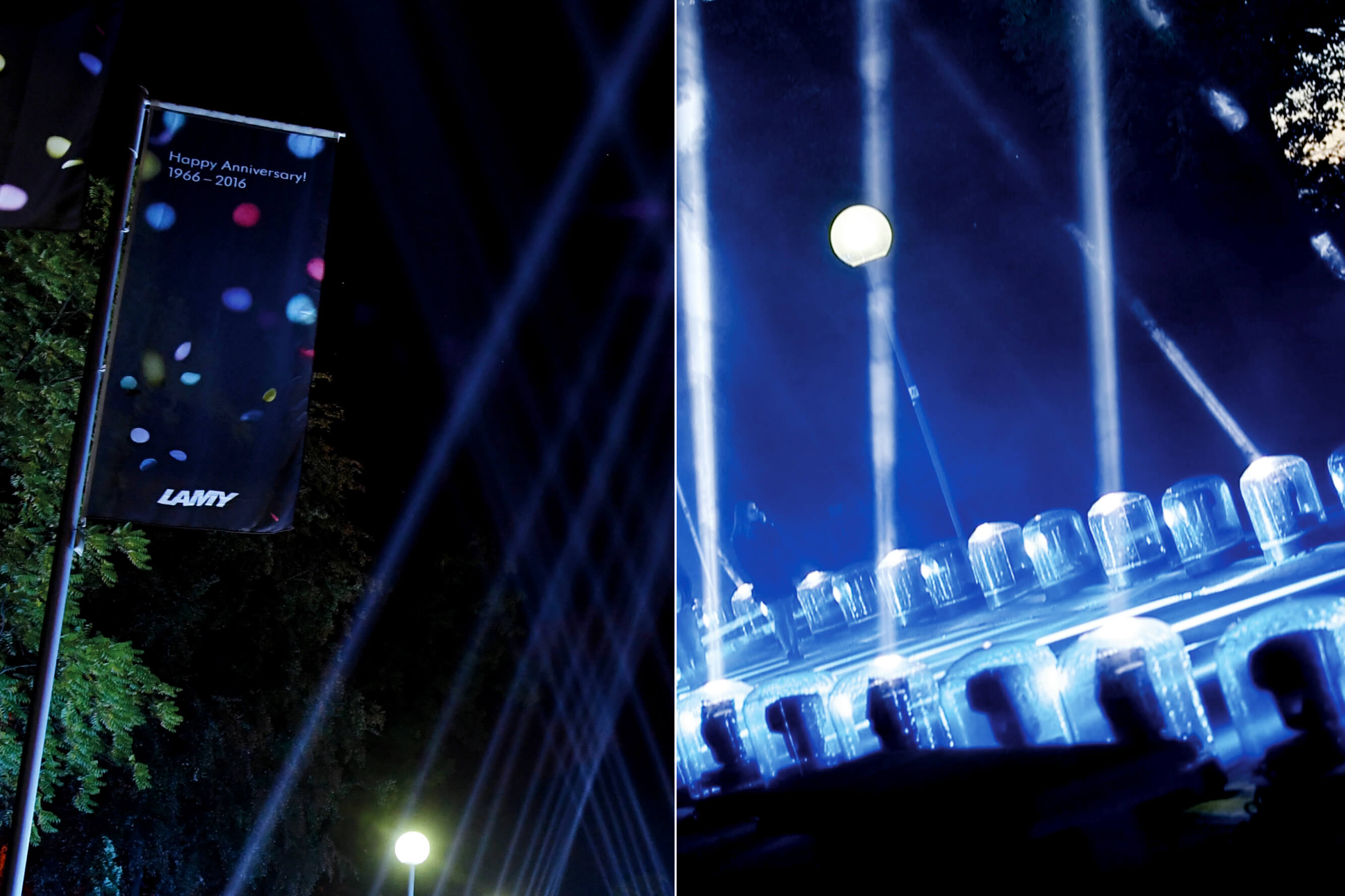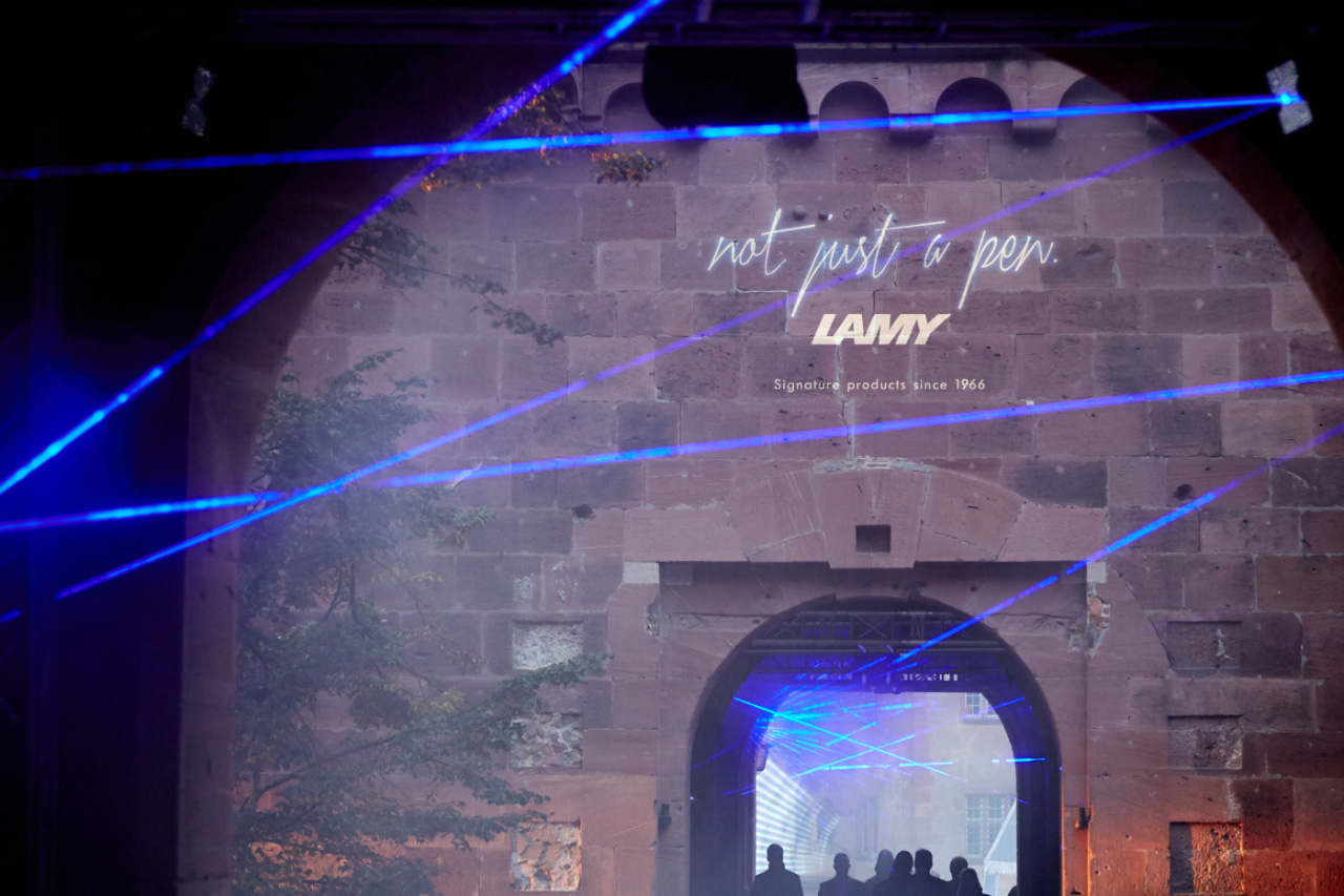 Die Weltmarke LAMY feierte am 1./2. Oktober 2016 inmitten der historischen Kulisse des Heidelberger Schlosses mit einem atemberaubende Setting 50 Jahre Lamy Design. Insgesamt wurden vier Licht-und Klangräume mit unterschiedlichen Konzeptionen und Medien bespielt.