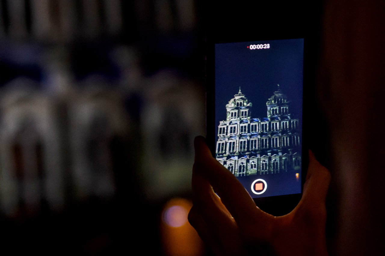 Die Lichtsymphonie spielte mit der Jubiläumszahl 50, die umrahmt von passenden Klangmixturen in einen Countdown verwandelte wurde, der in Suchscheinwerfersequenzen überging, die die Fassade regelrecht zu bewegen schienen, ja zum Tanzen brachten. Immer wieder erleuchteten verschiedene Teile der Fassade in hellem Licht und Linien bewegten sich im Takt der Musik, bildeten gar eine Symbiose mit der Fassade.